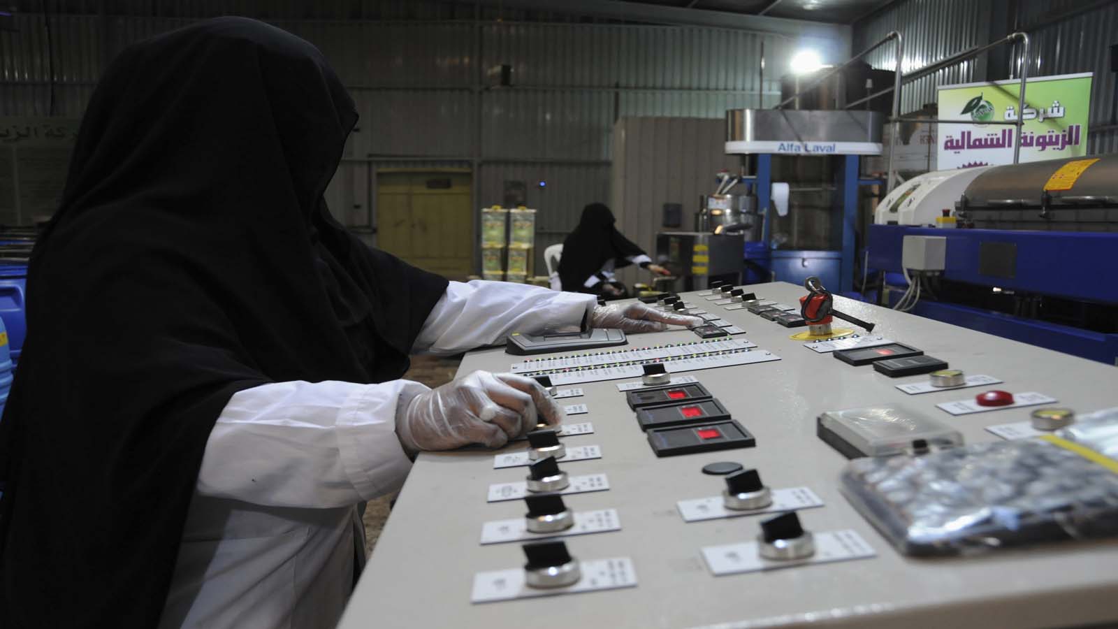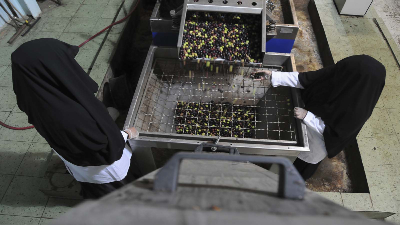 سعوديات يعصرن الزيتون