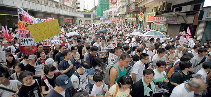 شارك الآلاف في مظاهرات في هونج كونج أمس الأربعاء لحث الصين على إتاحة ديمقراطية غير منقوصة للمدينة، مع احتدام معركة للتصدي لمحاولات بكين السيطرة على نتيجة الانتخابات المباشرة التي من المقرر أن تجري في عام 2017 لاختيار رئيس المدينة. وكانت بكين قد وعدت بإجراء انتخابات مباشرة في عام 2017 في المستعمرة البريطانية السابقة، ولكن المشكلة تكمن في تفاصيل القواعد التي تحدد من يستطيع خوض الانتخابات. وزادت التوترات بين القوى الديمقراطية في المركز التجاري الذي عاد لسيادة الصين في 1997 وقادة الحزب الشيوعي في بكين الذين يخشون انتخاب مرشح يدعم الديمقراطية لشغل هذا المنصب. وهتف محتجون يشاركون في المظاهرة السنوية للدعوة للديمقراطية التي تقام في أول أيام العام للمطالبة بديمقراطية كاملة في 2017 وشرطهم الرئيس عدم فرض قيود على الترشح كي يتمكن أي شخص حتى من ينتقد الصين من خوض الانتخابات. ورفض مسؤولون صينيون وصحف يسارية هذا الطلب استناداً لدستور المدينة الذي ينص على أن تقر لجنة الانتخابات التي تضم 1200 عضواً معظمهم من الموالين لبكين جميع المرشحين. وقال تسانغ فان يو وهو مصمم يشارك في مظاهرة مع ابنه البالغ من العمر سبعة أعوام للعام السادس على التوالي «ثمة تداخل متزايد (من بكين) يجب أن نخرج ليستمعوا لصوتنا. شكل الديمقراطية الذي تريده بكين غير مقبول، إنه مزيف.