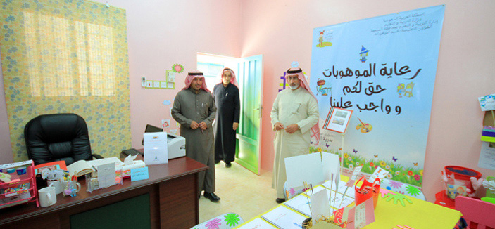 افتتح مدير التربية والتعليم بمحافظة المجمعة الأستاذ عبدالعزيز النصار، غرفة الموهوبات بالابتدائية الخامسة للبنات بالمجمعة، واطلع على محتوياتها وماقامت به المعلمة بدرية أبانمي، من جهود رائعة في تجهيز الغرفة بجهود ذاتية, حيث عبر مدير التعليم عن سرورة وإعجابه بما شاهده من تجهيز واهتمام من لدن المعلمة واستشعارها بالمسؤولية الملقاة على عاتقها, وقال: المعلمة بدرية، أثبتت بذلك أن ليس هناك عائق أمام الإبداع والعمل, وهي بذلك تساهم في نشر ثقافة الموهبة في المجتمع من خلال تقديم العديد من المبادرات والبرامج والمناشط المتنوعة.
