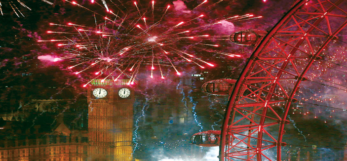 وحاول منظمو الاحتفالات في دبي تحطيم الرقم القياسي العالمي المسجل في موسوعة جينيس لأكبر عرض للألعاب النارية. وفي لندن هبطت على الناس سحب من رذاذ بطعم الموز والفراولة في الوقت الذي أضاءت فيه الألعاب النارية السماء فوق نهر التيمز وبرج بيج بن وغيره من المعالم.
