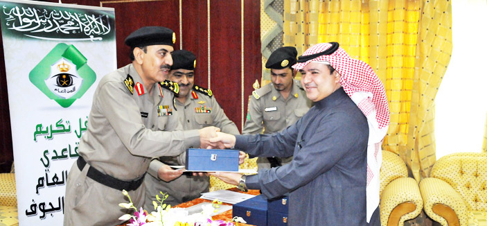 كرَّم مدير شرطة منطقة الجوف العميد عبيد الدعرمي، منسوبي الأمن العام المتقاعدين، حيث نقل لهم شكر وتقدير صاحب السمو الملكي وزير الداخلية الأمير محمد بن نايف بن عبدالعزيز.