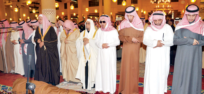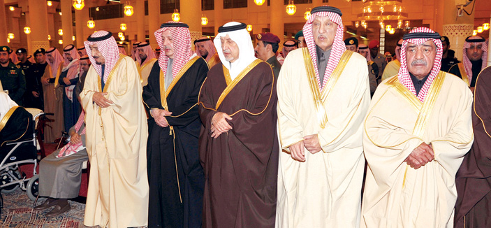 وقد أدى الصلاة مع سمو ولي العهد صاحب السمو الأمير عبدالرحمن بن عبدالله بن عبدالرحمن وصاحب السمو الأمير بندر بن محمد بن عبدالرحمن وصاحب السمو الملكي الأمير خالد الفيصل وزير التربية والتعليم وصاحب السمو الملكي الأمير عبدالإله بن عبدالعزيز آل سعود مستشار خادم الحرمين الشريفين وصاحب السمو الملكي الأمير أحمد بن عبدالعزيز آل سعود وصاحب السمو الأمير خالد بن فهد بن خالد وصاحب السمو الملكي الأمير مقرن بن عبد العزيز آل سعود النائب الثاني لرئيس مجلس الوزراء المستشار والمبعوث الخاص لخادم الحرمين الشريفين وأصحاب السمو الأمراء.