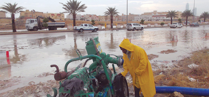 باشرت أمانة منطقة الرياض من خلال 140 فرقة مكونة من 550 مشرفاً مواقع التجمعات فور هطول الأمطار مساء أمس بعد أن تم تزويدهم بأكثر من 300 مضخة ثابتة ومتحركة تم نقلها بواسطة سيارات مجهزة لهذه الحالات .