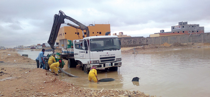 وقد تم سحب تجمع المياه من 132 موقعاً في العاصمة وتم رفع 127,049 متراً مكعباً من المياه.
