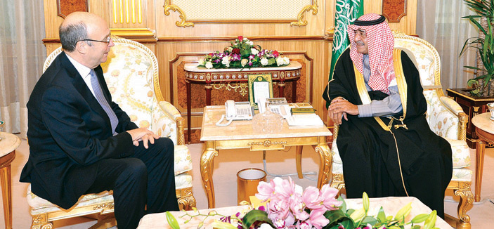 استقبل صاحب السمو الملكي الأمير مقرن بن عبد العزيز آل سعود النائب الثاني لرئيس مجلس الوزراء المستشار والمبعوث الخاص لخادم الحرمين الشريفين - حفظه الله- في مكتبه بقصر اليمامة في الرياض أمس مساعد معالي الأمين العام للأمم المتحدة ديرك بلامبلي.