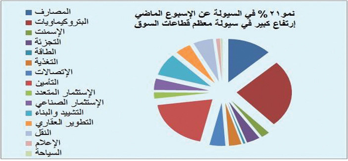 - 32.6 مليار ريال السيولة المجمعة للسوق بنمو حوالي 21% عن الأسبوع الماضي.