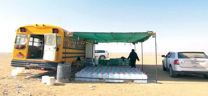 في وسط المناطق الصحراوية لم يعد البحث عن مواد غذائية أو ماء أو غيرها من أدوات الطبخ أمرا معدوما، حيث بدأ عدد من الشباب في ابتكار وتعديل سيارات كبيرة وحافلات وتحويلها إلى مراكز تجارية متنقلة، ومتابعة الفياض التي تشهد ربيعا في معظم مناطق المملكة ولله الحمد.