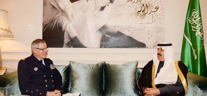 استقبل صاحب السمو الملكي الأمير متعب بن عبدالله بن عبدالعزيز وزير الحرس الوطني في قصر سموه بالرياض امس، معالي رئيس هيئة أركان القوات المسلحة الفرنسية الفريق أول بحري ادوارد غيو والوفد المرافق له. وجرى خلال الاستقبال تبادل الأحاديث الودية، ومناقشة عدد من الموضوعات ذات الاهتمام المشترك.