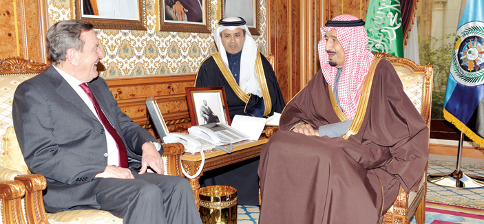 استقبل صاحب السمو الملكي الأمير سلمان بن عبدالعزيز آل سعود ولي العهد نائب رئيس مجلس الوزراء وزير الدفاع في مكتبه بالمعذر أمس دولة جيرهارد شرودر المستشار السابق لجمهورية ألمانيا الاتحادية الرئيس الفخري للاتحاد الألماني للشرق الأوسط والأدنى (نوموف).