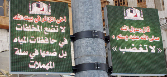 بتوجيه وإشراف معالي الرئيس العام لشؤون المسجد الحرام والمسجد النبوي معالي الشيخ الدكتور عبد الرحمن السديس، قامت إدارة التشغيل بالمسجد الحرام, بتركيب عدد16 شاشة إلكترونية خارجية قياس (100X154 سم ) من نوع LED , وُزّعت على أعمدة الإنارة في الساحات الخارجية للمسجد الحرام لتتم الاستفادة منها في توجيه رسائل إرشادية وتوعوية لروّاد المسجد الحرام وبعدة لغات.