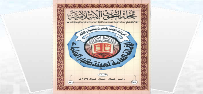 صدر العدد رقم (100) من مجلة البحوث الإسلامية، المجلة العلمية المحكمة التي تصدر عن الرئاسة العامة للبحوث العلمية والإفتاء.