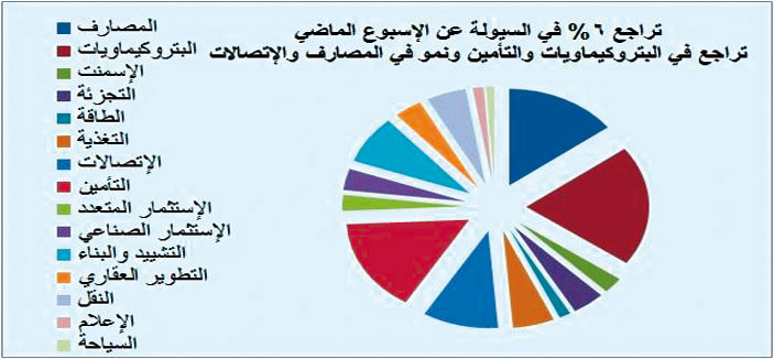 - 32.6 مليار ريال السيولة المجمعة للسوق بتراجع نحو 6 % عن الأسبوع الماضي.