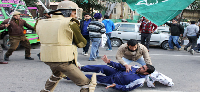 - عناصر من الشرطة الهندية يشتبكون مع نشطاء من مؤيدي حزب ناس كشمير الديمقراطي. الاجتماع نُظّم للاحتجاج على الحكومة الرسمية... أ ف ب