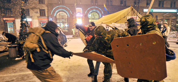 - تواصل المظاهرات في وسط كييف من المطالبين بالتقارب مع الاتحاد الأوروبي رغم برودة الطقس... أ ف ب