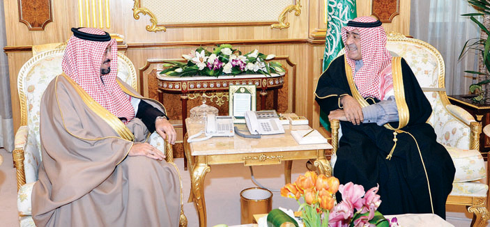 استقبل صاحب السمو الملكي الأمير مقرن بن عبد العزيز آل سعود النائب الثاني لرئيس مجلس الوزراء المستشار والمبعوث الخاص لخادم الحرمين الشريفين حفظه الله في مكتبه بقصر اليمامة في الرياض أمس سفير مملكة البحرين لدى المملكة الشيخ حمود بن عبد الله آل خليفة.