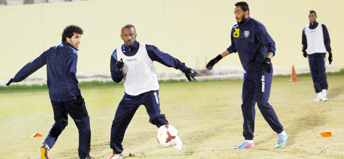 ميدانياً يواصل الفريق تدريباته تحت إشراف المدير الفني توفيق روابح الذي سعى خلال الفترة الماضية إلى إيجاد بديل للموقوف محمود معاذ وتطبيق عدد من الجمل التكتيكية التي يسعى لنهجها في اللقاء. يذكر أن تمارين الفريق شهدت خلال اليومين الماضيين حضوراً شرفياً بارزاً تقدّمه عضوا المجلس التنفيذي عبدالعزيز الحميد وأحمد أبا الخيل ورئيس النادي السابق علي التويجري وعدد من أعضاء الشرف.