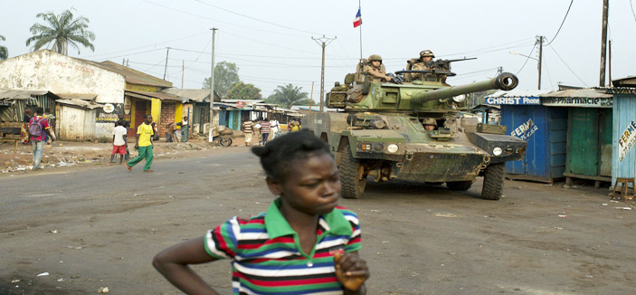 - دبابة حفظِ سلام فرنسيةِ أثناء قيامها بدورية في أحد شوارع مدينة بانغي عاصمة أفريقيا الوسطى ... رويترز