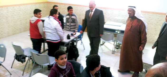 وكان في استقباله الدكتور عبدالرحمن بن سعد الحقباني، رئيس اللجنة الوطنية للتعليم الأهلي ورئيس مجلس الإدارة بشركة الرياض التعليمية، والأستاذ عبدالله بن عبدالعزيز الحمد مدير عام شركة الرياض التعليمية، والدكتورأسعد أبو حسين. مدير إدارة التعليم والتطوير بشركة الرياض، والأستاذ عبدالله الحمد المدير التنفيذي للمدارس، والأستاذ أحمد سالم. مدير العلاقات العامة بالمدرسة.