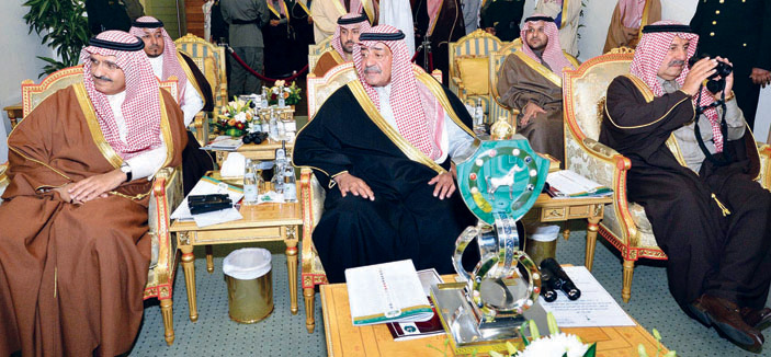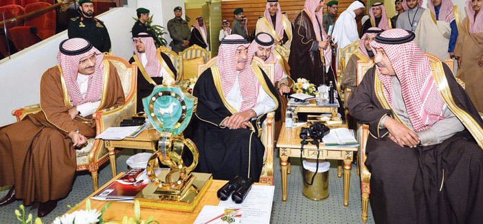 نيابة عن خادم الحرمين الشريفين توج صاحب السمو الملكي الأمير مقرن بن عبد العزيز النائب الثاني لرئيس مجلس الوزراء أمس بميدان الملك عبد العزيز بالجنادرية الأمير متعب بن عبدالله بكأس خادم الحرمين لفئة الإنتاج والتي كسبها الجواد متوالي في مشهد خططي لافت وقاده للفوز الفارس كاميلو اسبينا.