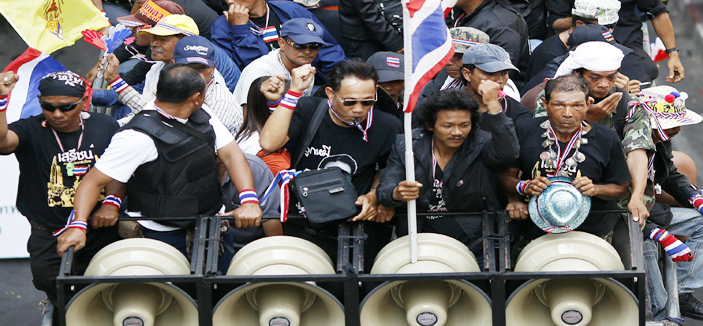 ونزل مئات المتظاهرين إلى الشوارع عملاً بتعليمات زعيمهم سوثيب ثوغسوبان ليثبتوا أن الانتخابات لن تؤثر في تصميمهم على إسقاط رئيسة الوزراء ينغلوك شيناواترا.
