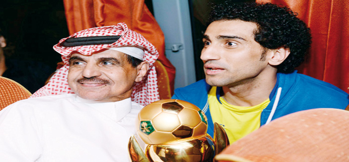 المشيقح الذي يسعى دائماً في كل ما هو «نصر» يظهر في الصورة فرحاً مع المهاجم حسن الراهب صاحب هدف التأهل للنهائي، ويستحق أبو تركي هذه الفرحة التي أفرزت ابتسامة معبّرة.