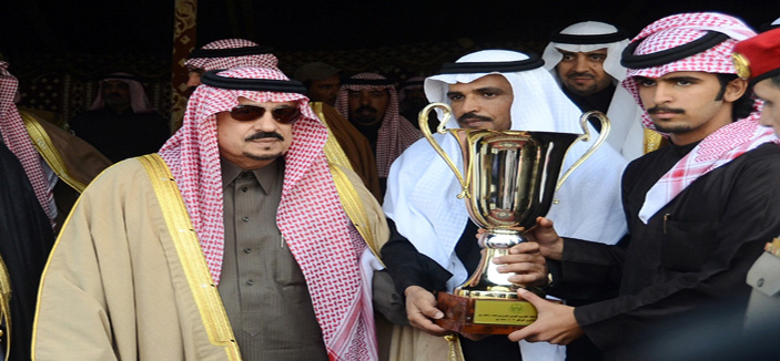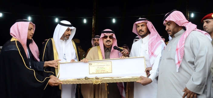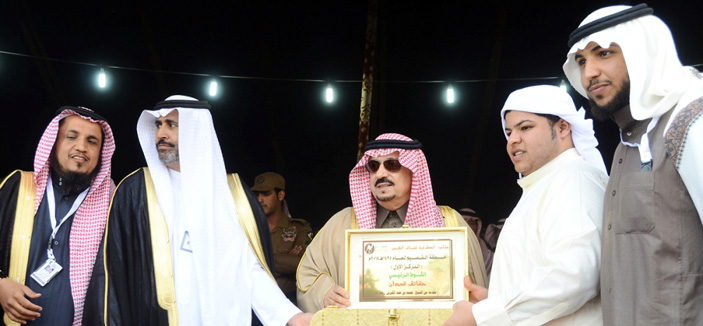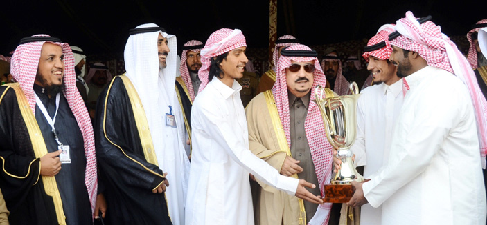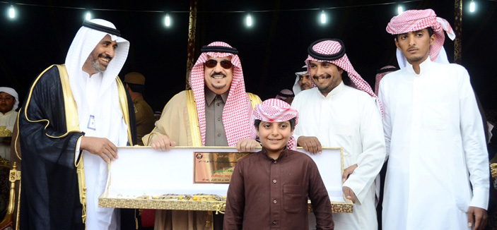 وسلم سموه الفائز بالمركز الأول في الشوط الثاني فيصل بن شريم بعد فوز القعود «الأفضل» في المخصص للحقايق قعدان، جائزة السيارة والخنجر، كما كرم سموه رئيس اللجنة العليا المنظمة للسباق الأستاذ مشعل بن ناصر المكيرش والداعمين والمشاركين.