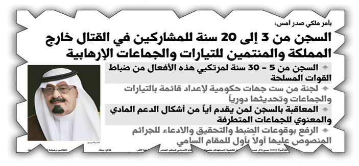 نوهت بالأمر الملكي بعقوبة من شارك في أعمال قتالية خارج المملكة