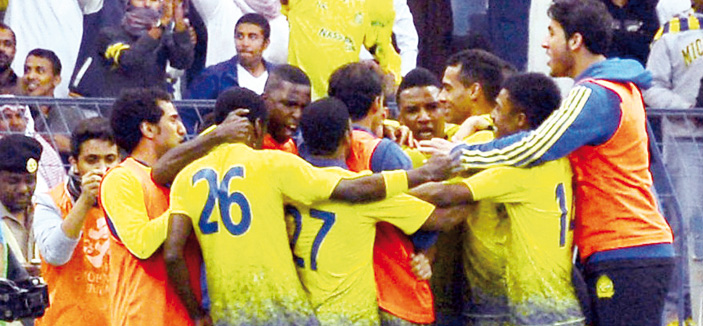 * من درّة الملاعب.. أشرقت شمس النصر من جديد معلنة عودة (العالمي) مهرولا - وبلياقة الأبطال والكبار- في مضمار التتويج ومصافحة الذهب.. عقب فوزه -مؤخراً- بكأس ولي العهد الأمين أمام منافسة التقليدي (الهلال)، بعد سنوات من الحرمان والأحزان عاشها عشاق الفن الأصفر والأزرق أكثر من عقد ونصف من الزمن.. إلى أن جاء الفرج ومفتاح الفرح بقيادة رمزه الجديد المستنير (فيصل بن تركي) الذي نقل فارس نجد إلى عالم المجد والألقاب الذهبية.. وأخرجه من عالم الانكسارات والعثرات والتخبطات إلى عالم المنجزات والنجاحات والمكتسبات التاريخية.. فمنذ توليه زعامة البيت الأصفر عام 2009, ظل يعمل جاهداً في بناء فريق فولاذي وخرافي.. يملك شخصية ميدانية (قوية) ومقومات البطل القادر على حصد الألقاب الذهبية والمنجزات الكبيرة.. فعمل بحكمته وحنكته وكياسته وتفاعله المتزن مع المتغيرات وإرهاصاتها, وهو يقود سفينة ناديه بشعبيته المعروفة وقاعدته الجماهيرية العريضة وتحّمل الهموم والمتاعب والمثالب الصفراء, وصبر على مرارتها وقسوتها.. والصبر نصف الحكمة..! ونجح أخيراً في صناعة وبناء فريق ناضج ومتكامل من عيار ذهب (2014) لا يعرف لغة اليأس والقنوط والإحباط.. أعاد الأمجاد الغابرة للنادي الستيني العريق بفوزه بكأس سلمان.. وقبل ذلك تمسكه بصدارة دوري جميل، وبات العالمي المنتشي (قريبا) من إضافة اللقب الثاني الكبير إلى صندوق منجزاته الذهبية.. ودغدغت مشاعر وشرايين عشاقه ومحبيه وهم يرددون هذا «عصر النصر»..! بقيادة رمزه الجديد بتضحياته الكبيرة، وخدماته الجليلة، وبصماته الواضحة, وإسهاماته البارزة.