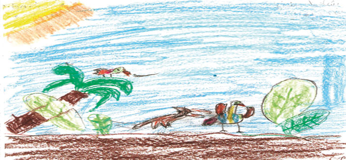 انطلقت الحمامة ترفرف بجناحيها في الفضاء بعدما ودعت زوجها المسافر في رحلته إلى بلاد بعيدة، وراحت تنظر إلى الأرض باحثة عن أغصان مناسبة لإعداد عش يسعها مع البيض الذي ستضعه بعد أيام.