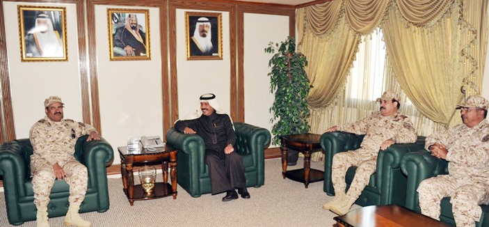 وبهذه المناسبة رحَّب سموه بمعالي الفريق والوفد المرافق, واستمع الجميع للتوجيهات السديدة لسموه. من جهته شكر معالي الفريق سموه وأعطى إيجازاً مختصراً عن الإستراتيجية التي يقوم بها الجهاز العسكري لتطوير وتحديث قوات الحرس الوطني, والوصول بها الى أعلى درجات الكفاءة والجاهزية لخدمة الدين ثم المليك والوطن الغالي.