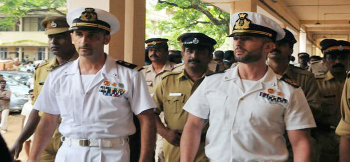 ذكرت تقارير إخبارية هندية أمس السبت أن الحكومة قررت إسقاط الاتهامات الموجهة لجنديَّي البحرية الإيطالية المتهمين بقتل صيادَين هنديَّين، وكانت ستحكم عليهما بالإعدام في حال صدور حكم بالإدانة. وكان ماسيميليانو لاتوري وسالفاتوري جيرون يخدمان في الفريق الأمني على ناقلة نفط إيطالية كانت تعبر المحيط الهندي في فبراير عام 2012 عندما قتلا صيادَين، واعتُقلا بعد أربعة أيام. وقالت صحيفة «آسيان ايدج» نقلاً عن مصادر بوزارة الداخلية الهندية إنه وسط ضغط شديد من روما طلبت وزارة الداخلية الاتحادية الهندية الآن من وكالة التحقيق الوطني ألا تحاكم الجنديَّين بموجب مادة متشددة. كما اعترضت إيطاليا بشدة على توجيه الاتهامات بناء على هذه المادة. وأضافت الصحيفة بأن وزارة الداخلية طلبت الآن من وكالة التحقيق أن تصيغ الاتهامات بموجب مادة أخرى في قانون قمع التصرفات غير القانونية.