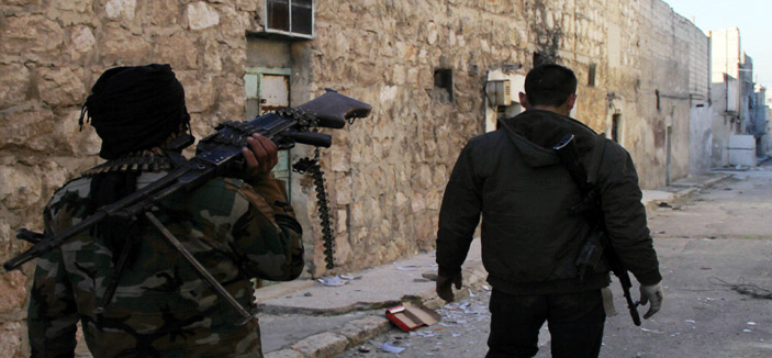 - عناصر من أفراد الجيش الحر في حلب شمال سوريا أثناء اشتباكهم مع قوات الأسد.