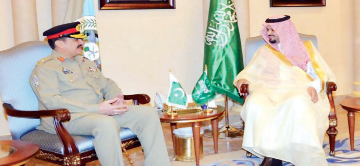 استقبل صاحب السمو الملكي الأمير سلمان بن سلطان بن عبدالعزيز نائب وزير الدفاع بمكتبه بجدة أمس معالي قائد الجيش الباكستاني الفريق أول راحيل شريف.