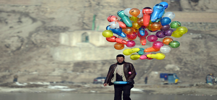 - أحد الباعة المتجولين يمشي بالقرب من إحدى البحيرات السياحية في أفغانستان مما يؤكد على تحسن الأوضاع الأمنية وأن البلاد تشهد حالة من الاستقرار... ا ف ب