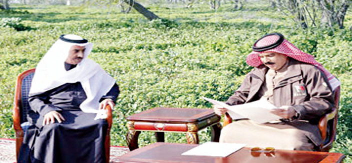 وقد سلم الرسالة إلى جلالة الملك المفدى سعادة الدكتور عبد الله بن عبد الملك آل الشيخ سفير خادم الحرمين الشريفين لدى مملكة البحرين خلال استقبال جلالته له في روضة قصر الصخير . هذا وقد أعرب جلالة ملك مملكة البحرين عن خالص شكره وتقديره لخادم الحرمين الشريفين حفظه الله على هذه الدعوة الكريمة لهذه المناسبة التي بدأت منذ عهد المغفور له بإذن الله تعالى الملك خالد بن عبدالعزيز آل سعود طيب الله ثراه والتي تعكس عمق ومتانة العلاقات الأخوية التاريخية الوثيقة التي تربط البلدين والشعبين الشقيقين ، مشيدا حفظه الله بما تشهده هذه العلاقات من نمو وتقدم على كافة الأصعدة. كما أثنى جلالته على الدور الذي يضطلع به مهرجان الجنادرية في الحفاظ على التراث العربي السعودي الأصيل وبما حققه من نجاح متواصل وما يحظى به من اهتمام من قبل المفكرين والباحثين والمثقفين والمهتمين بالتراث والثقافة، منوها كذلك بتنوع فعاليات المهرجان الثقافية والفكرية والفنية والأدبية، معربا جلالته عن تمنياته بالنجاح لهذا المهرجان الذي يؤكد تميز الدور الحضاري للمملكة العربية السعودية الشقيقة .
