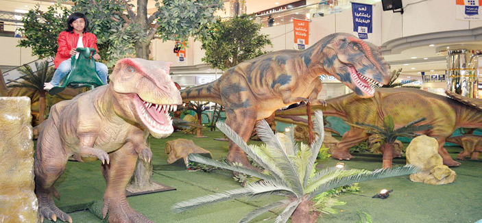 الطفلان خالد وعبدالله شدهما منظر الديناصورات العجيبة وحجمها الكبير؛ فقد تركا أهلهما يتسوقون؛ لكي يشاهدا المعرض، وأُعجبا به جداً؛ إذ بقيا لأجل المشاهدة مدة طويلة دون حراك.