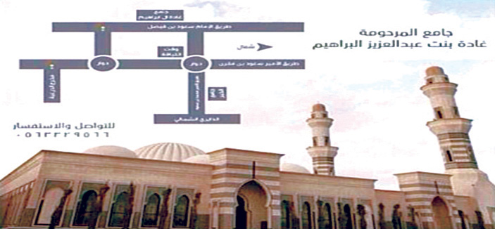يفتتح اليوم الأربعاء جامع غادة بنت عبدالعزيز بن سعد آل إبراهيم (رحمها الله) والواقع بحي الملقا شمال العاصمة الرياض، حيث سيؤدي المصلون صلاة العشاء بالجامع إيذاناً بافتتاحه أمام المصلين.