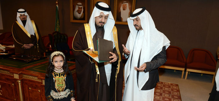تسلم صاحب السمو الملكي الأمير فيصل بن خالد بن عبدالعزيز، أمير منطقة عسير في المجلس العام بديوان الإمارة صباح أمس هديةً تذكارية من الطفلة ريما بنت خالد، يرافقها والدها خالد بن مشبب آل رفيدة، وهي عبارة عن فيلم من بطولة الطفلة ريما تحت عنوان: (عودةٌ إلى الماضي). وقدم سموه شكره وتقديره إلى الطفلة ووالدها على الهدية المقدمة، مؤكداً أهمية تنمية المواهب ورعايتها.