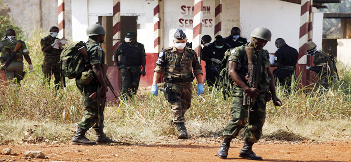 - قوات من حفظ السلام الإفريقية والفرنسية تقف بالقرب من مقبرة جماعية في أحد المعسكرات التي احتُلت من قِبل مجموعة مسلحة في بانجوي عاصمة إفريقيا الوسطى. . (رويترز)