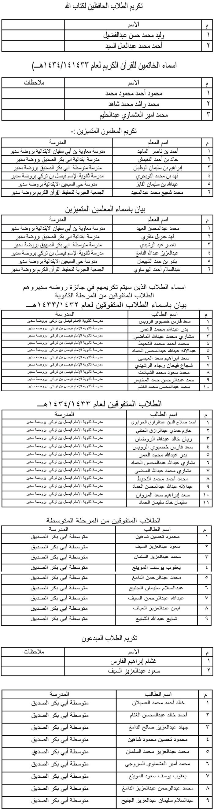 وفي ختام حديثه وجه رئيس مركز روضه سدير كلمة لأبنائه حفظة كتاب الله والمتفوقين والمتفوقات، وقال: إن النجاح ثمرة العمل، والتفوق ثمرة الجد والاجتهاد والله سبحانه وتعالى لا يضيع أجر من أحسن عملا، فإلى مزيد من النجاح والتفوق حتى تكونوا قدوة صالحة ليسعد بكم وطنكم وأمتكم، فالوطن أعطانا الكثير فلنكن له خير مواطنين.