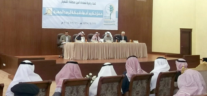 كرم أمين منطقة القصيم أمين مجلس المرصد الحضري لحاضرة بريدة م. صالح الأحمد، الجهات الحكومية المشاركة للرصد الحضري لحاضرة بريدة في حفل تكريمي أقيم بمركز الملك خالد الحضاري في مدينة بريدة، وقد بدأ اللقاء بكلمة أمين المنطقة أبدى خلالها شكره وتقديره للدور الهام الذي يقوم به جميع أعضاء شبكة الرصد من تعاون مثمر وبنّاء في جمع البيانات الخاصة بالإدارات الحكومية العاملة في مدينة بريدة.