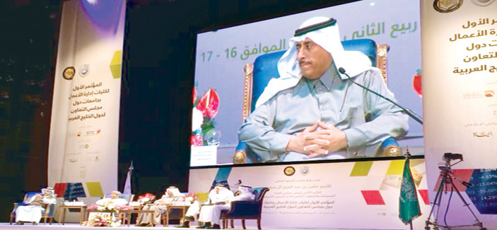 ضمن برنامج المؤتمر الأول لكليات إدارة الأعمال بجامعات دول مجلس التعاون لدول الخليج العربية، تم عقد حلقة نقاش بعنوان (مواجهة التحديات المعاصرة في مجال المال والأعمال) شارك فيها معالي الأستاذ الدكتور أحمد بن محمد السيف نائب وزير.