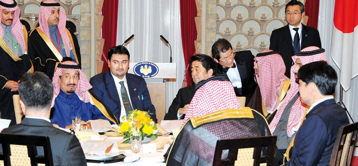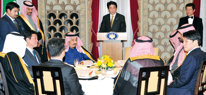 شرف صاحب السمو الملكي الأمير سلمان بن عبدالعزيز آل سعود ولي العهد نائب رئيس مجلس الوزراء وزير الدفاع مساء أمس حفل العشاء الذي أقامه دولة السيد شينزو آبي رئيس وزراء اليابان وذلك بديوان مجلس الوزراء الياباني في طوكيو. وألقى دولة رئيس وزراء اليابان خلال حفل العشاء كلمة فيما يلي نصها: