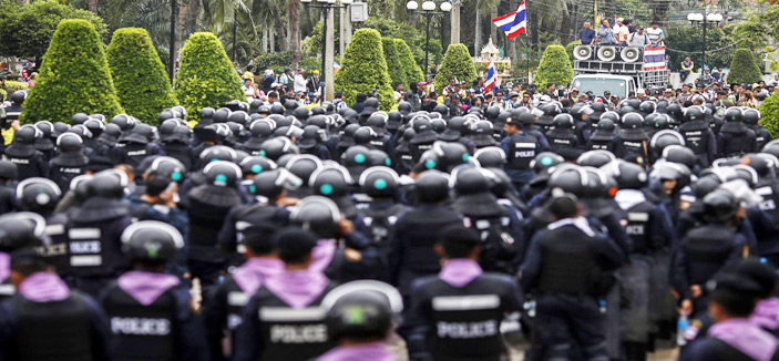 - قوات الامن التايلندية تحشد افرادها لمنع المتظاهرين المناوئين للحكومة من الوصول لمقر الحكومة في قلب العاصمة التايلندية بانكوك