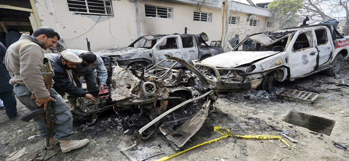 - قوات الشرطة الافغانية تقوم بفحص موقع تعرض لعملية تفجير في منطقة سوربي شرق العاصمة كابول