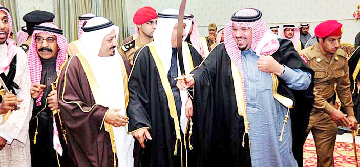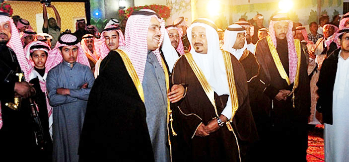 وعند وصول سموه إلى مقر الحفل تم استقباله بباقات الورود من قبل صغار العائلة والترحيب بسموه من قبل أفراد الاسرة وأبنائهم وأحفادهم.
