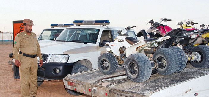 وفي سياق الإنجازات الأمنية نفذت شرطة منطقة الرياض عصر أمس الأول حملة ملاحقة على العمالة التي تمارس العمل لحسابها الخاص في تأجير الدراجات بحي الثمامة شرق شمال العاصمة الرياض، حيث انطلقت الحملة بعد صلاة العصر واستمرت قرابة أربع ساعات بمشاركة من إدارة الضبط الإداري ودوريات الأمن والمرور والدفاع المدني وأمانة منطقة الرياض والمجاهدين وإدارة التحريات والبحث الجنائي وقوة الطوارئ الخاصة وفرق مكافحة المخدرات والجوازات. وكانت الحملة التي استهدفت العمالة التي تمارس العمل لحسابها الخاص بالدراجات النارية شاركت «الجزيرة» بالجولة الميدانية وتم خلال الحملة ضبط (55) دراجة والقبض على (6) من مخالفي نظام الأقامة والعمل.