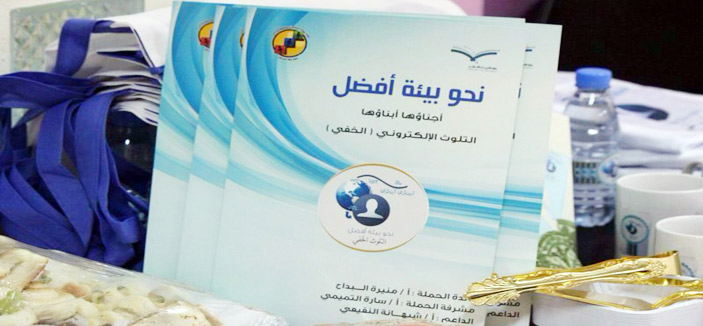 وبينت أنه تم التعاون مع مبادرة ارتقاء بالمنطقة الشرقية لإنشاء أماكن مخصصة لرمي المخلفات الإلكترونية في مدينة الرياض، كي يتم الاستفادة منها لاحقا، وقد تم تكريم فريق العمل للحملة. من جهة ثانية دشن مكتب التربية والتعليم بالشفا الحملة التوعوية لبرنامج نحو بيئة أفضل (التلوث الخفي أجناؤها أبنائها) في الثانوية 153 التابعة للمكتب، بحضور مشرفات ورائدات النشاط بجهود مبذولة من قائدات الحملة مديرة المدرسة منيرة البداح. وقد استعرضت رائدة النشاط سارة عبد العزيز التميمي أهداف الحملة المتمثلة بالتوعية بحظر الإشعاع الكهرومغناطيسي وكيفية التعرض له أكثر من الأجيال الماضية، وتنحصر مصادره في المجالات التي تنبعث من شبكات الضغط العالي، وأجهزة الإرسال والبث الإذاعي أو التلفاز، وأجهزة الرادار والكمبيوتر والأجهزة الكهربائية المنزلية وأبراج التليفون المحمول، والميكروويف، أو المحطات القصيرة، وهو ما يعرف بخطر (التلوث الإلكتروني).