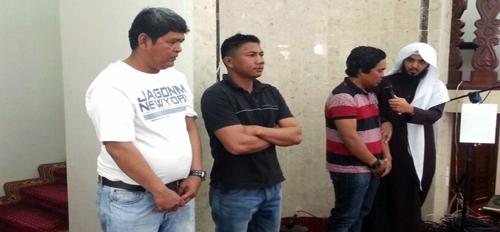 أشهر ثلاثة من الجنسية الفلبينية, إسلامهم أمام جموع من المصلين بعد صلاة الجمعة الماضية بجامع ابن القيم.