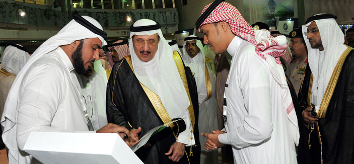 وقبل انطلاق الحفل دشن سموه فعاليات يوم المهنة الأول بافتتاح المعرض المقام على هامشه بمقر كلية العلوم، بمشاركة 25 جهة وشركة عالمية ومحلية، الذي يهدف إلى إطلاع الطلاب والطالبات على الفرص الوظيفية والتدريبية المتاحة، إلى جانب توعية المجتمع في منطقة جازان بمكونات سوق العمل السعودي.